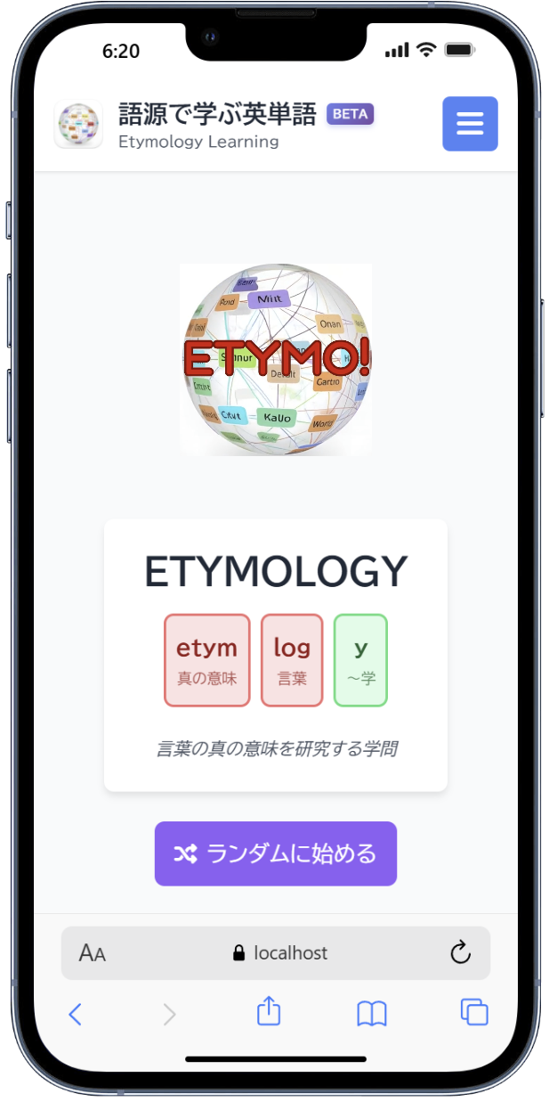 「語源で学ぶ英単語」は、英単語を接頭辞・語根・接尾辞に分解して視覚的に表示することで、語源から単語を理解・記憶する学習支援Webアプリケーションです。